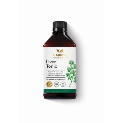 Harker Herbals Liver Tonic is a herbal supplement containing over 20 traditionally used hepatic herbs and oils formulated to support liver health and blood purification. This gentle-acting tonic is designed to help detoxify the liver while also benefiting the spleen, gallbladder, and pancreas. The blend works to support a healthy lymphatic system and promote overall wellness through natural botanical ingredients with a long history of traditional use. During initial use, some individuals may experience mild nausea as the body naturally eliminates toxins—this typically resolves with rest, hydration, and peppermint tea. Always read the label and follow usage directions. If symptoms persist, consult your healthcare professional before continuing use.