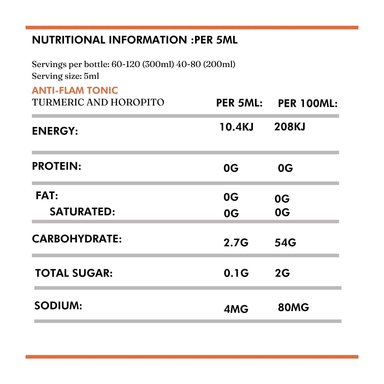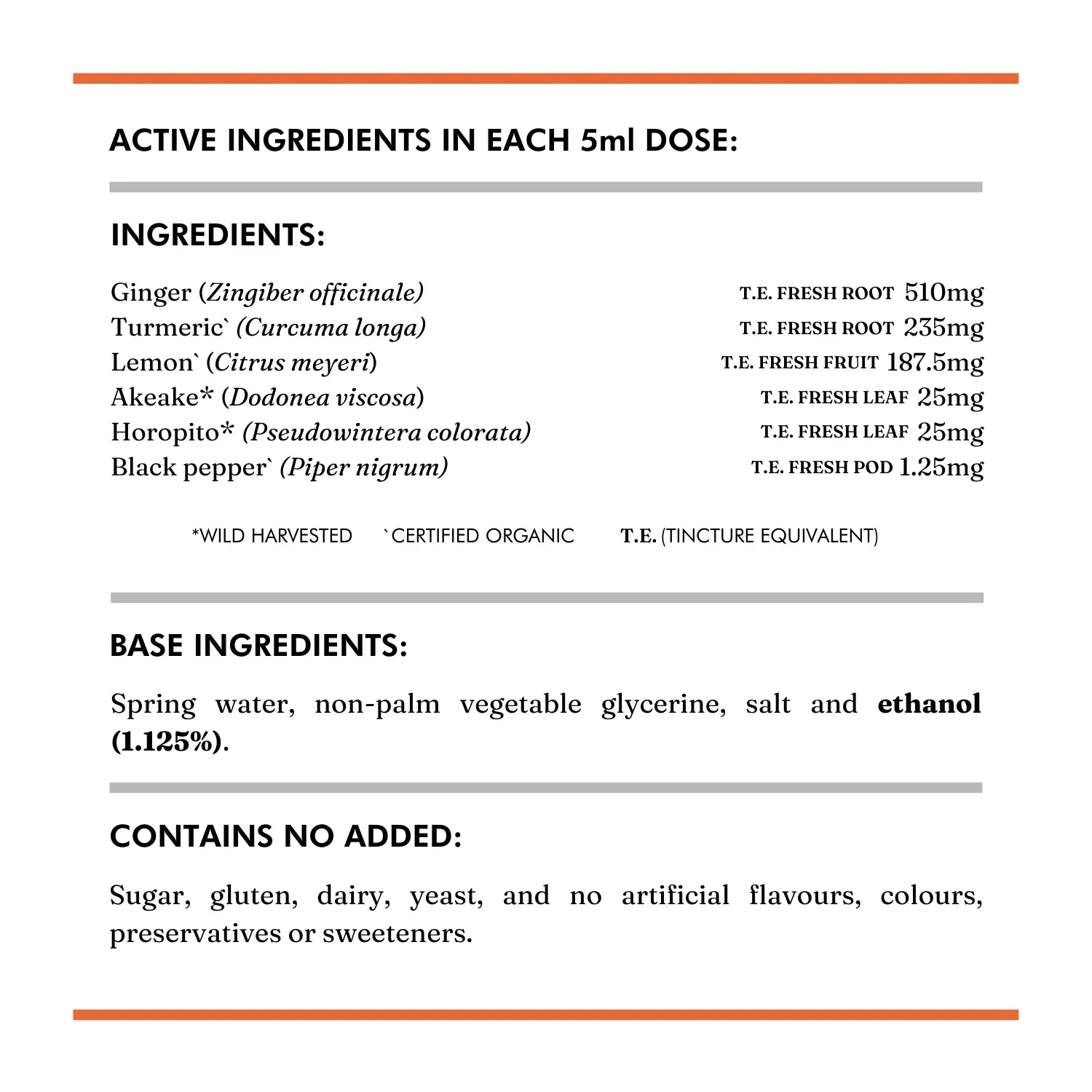 If you suffer from joint discomfort or digestive upsets, our Anti-Flam helps with all things inflammation. This tonic is infused with a powerful blend of organic turmeric and ginger, as well as natives like horopito, and akeake. These plants work in synergy to support inflammation, digestion and promote healthy circulation.